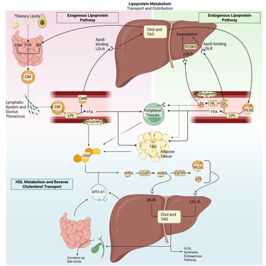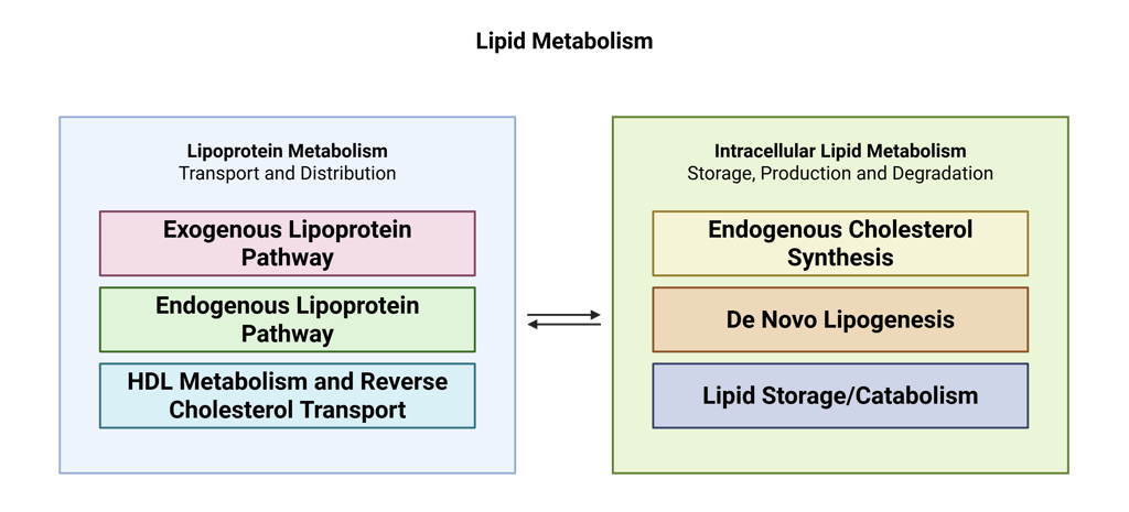 Lipid metabolism can be understood as comprising two interdependent components. The first is lipoprotein metabolism, which governs the transport and distribution of lipids between the liver, intestine, and peripheral tissues. The second is intracellular lipid metabolism, encompassing the synthesis, storage, and breakdown of lipids to provide energy locally within cells or to supply distant tissues. These two facets are tightly interwoven: intracellular lipid pathways generate substrates that enter the circulation via lipoproteins, while circulating lipids influence cellular lipid handling. If you haven’t done so already, I recommend reading the clinical pearl about the core concepts of lipid metabolism first.