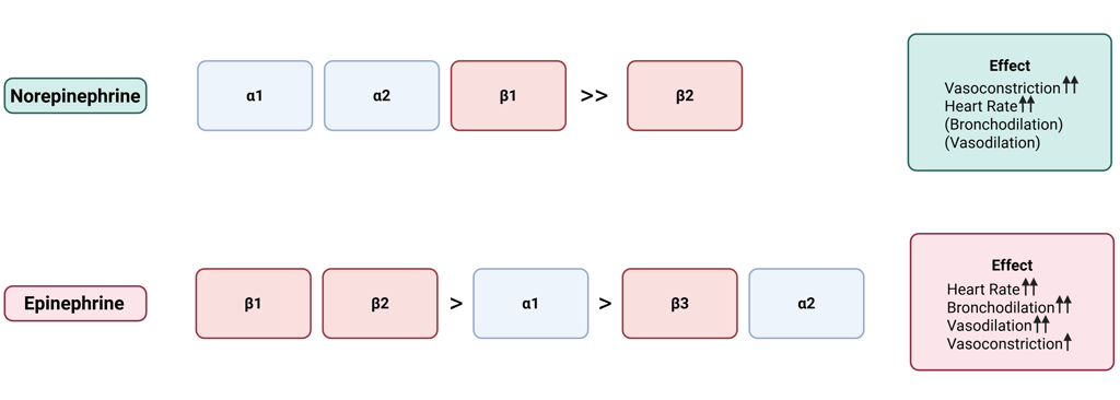 Although both epinephrine and norepinephrine activate α- and β-receptors, they differ in their affinities: