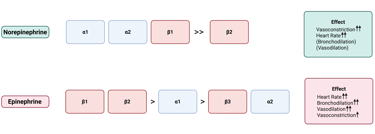 Illustration: Affinity of Norerpinephrine and Epinephrine on adrenergic receptor subtypes