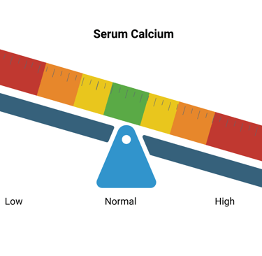 Serum calcium level: 11.8 mg/dL (Reference Range: 8.5–10.2 mg/dL) or 2.94 mmol/L (Reference Range: 2.20 - 2.55 mmol/L)