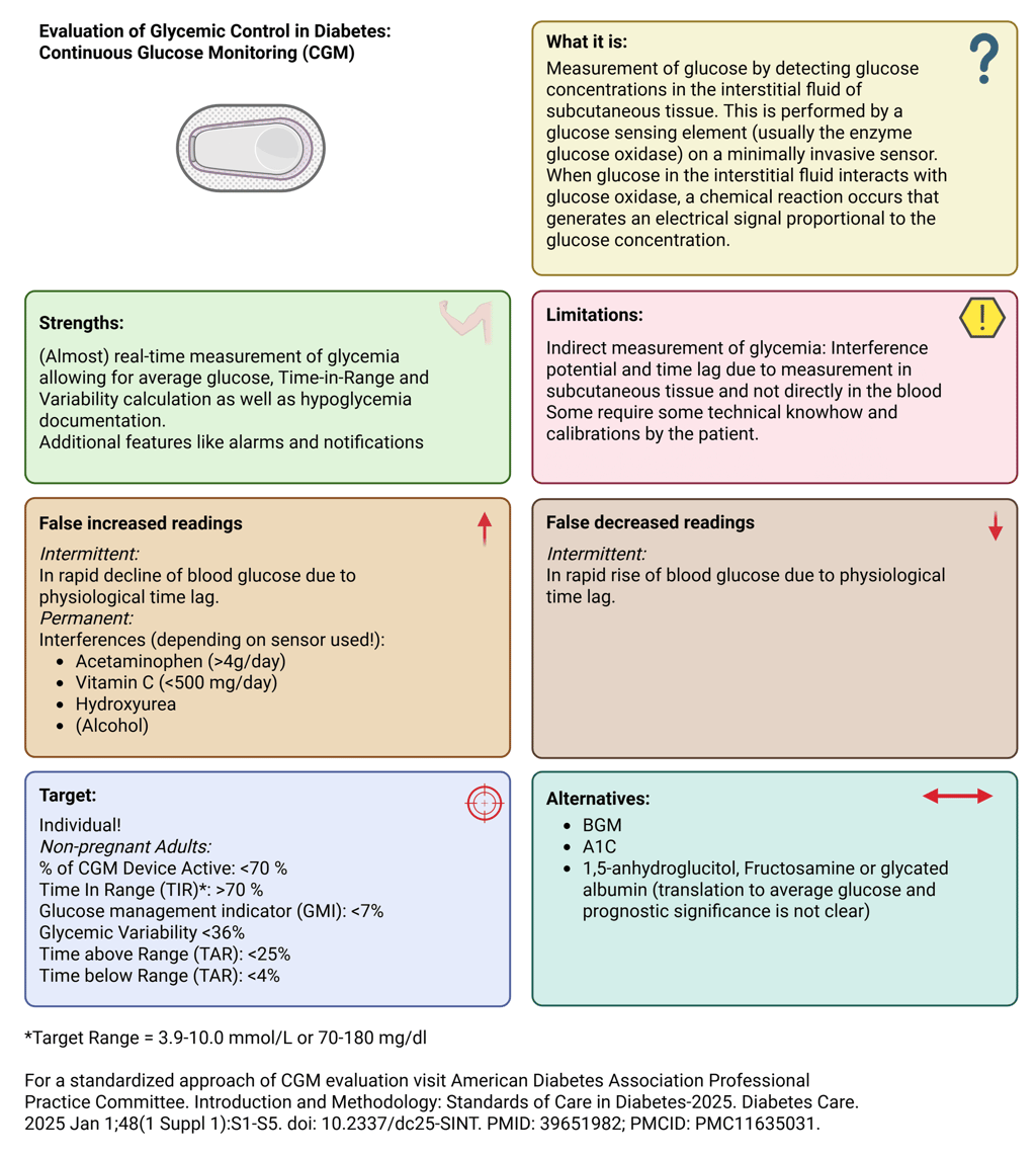 The major limitation of BGM lies in its episodic nature, data depend entirely on patient measurements. Hypoglycemia is only captured when the patient tests during the event, and frequent fingersticks can reduce adherence. Nevertheless, structured BGM (e.g., pre- and post-meal testing or during specific situations) can provide valuable insights into daily glucose patterns.